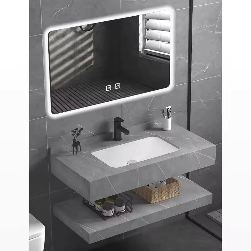எல்.ஈ.டி கண்ணாடியுடன் ராக் ஸ்லேட் குளியலறை அமைச்சரவை