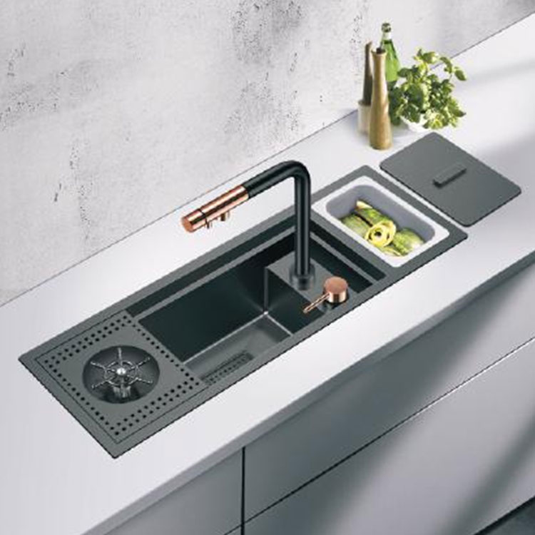 MNBAM இலிருந்து ஸ்டெயின்லெஸ் ஸ்டீல் கிச்சன் சிங்க் மற்றும் கத்தி ரேக் மற்றும் கவர் போர்டுடன் உங்கள் சமையலறையை மேம்படுத்தவும் - புதுமையானது ஸ்டைலான மற்றும் திறமையான சமையல் இடத்திற்கான நடைமுறையை சந்திக்கிறது. உங்கள் தனிப்பட்ட தேவைகளைப் பூர்த்தி செய்யும் மற்றும் வடிவம் மற்றும் செயல்பாட்டின் சரியான கலவையை பிரதிபலிக்கும் சமையலறை தீர்வைத் தேர்வு செய்யவும்.